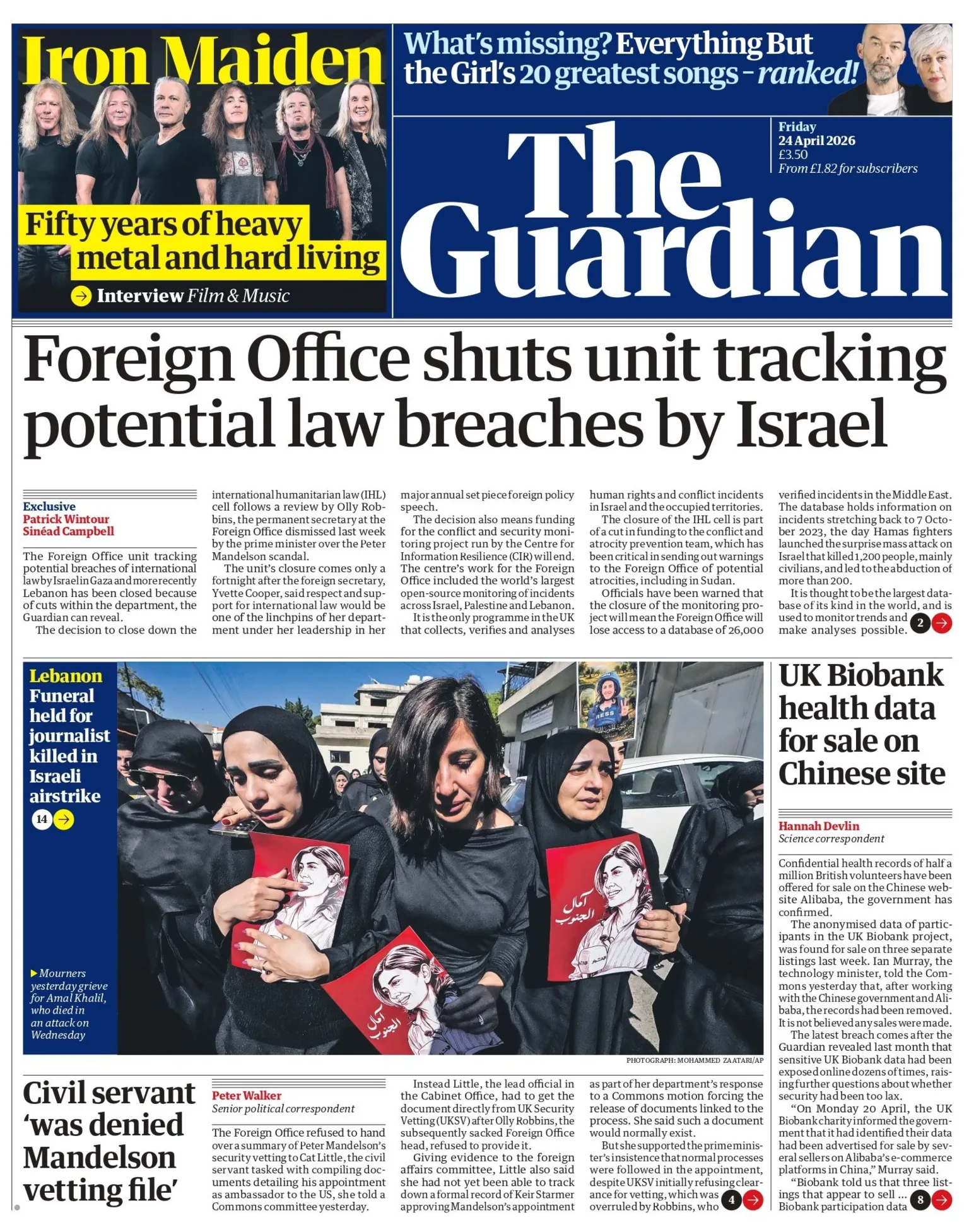 reveals that a Foreign Office unit responsible for monitoring potential breaches of international law by Israel in Gaza and Lebanon is being disbanded due to budget cuts. This decision follows Foreign Secretary Yvette Cooper's recent statement affirming that support for international law remains a core priority for the department.